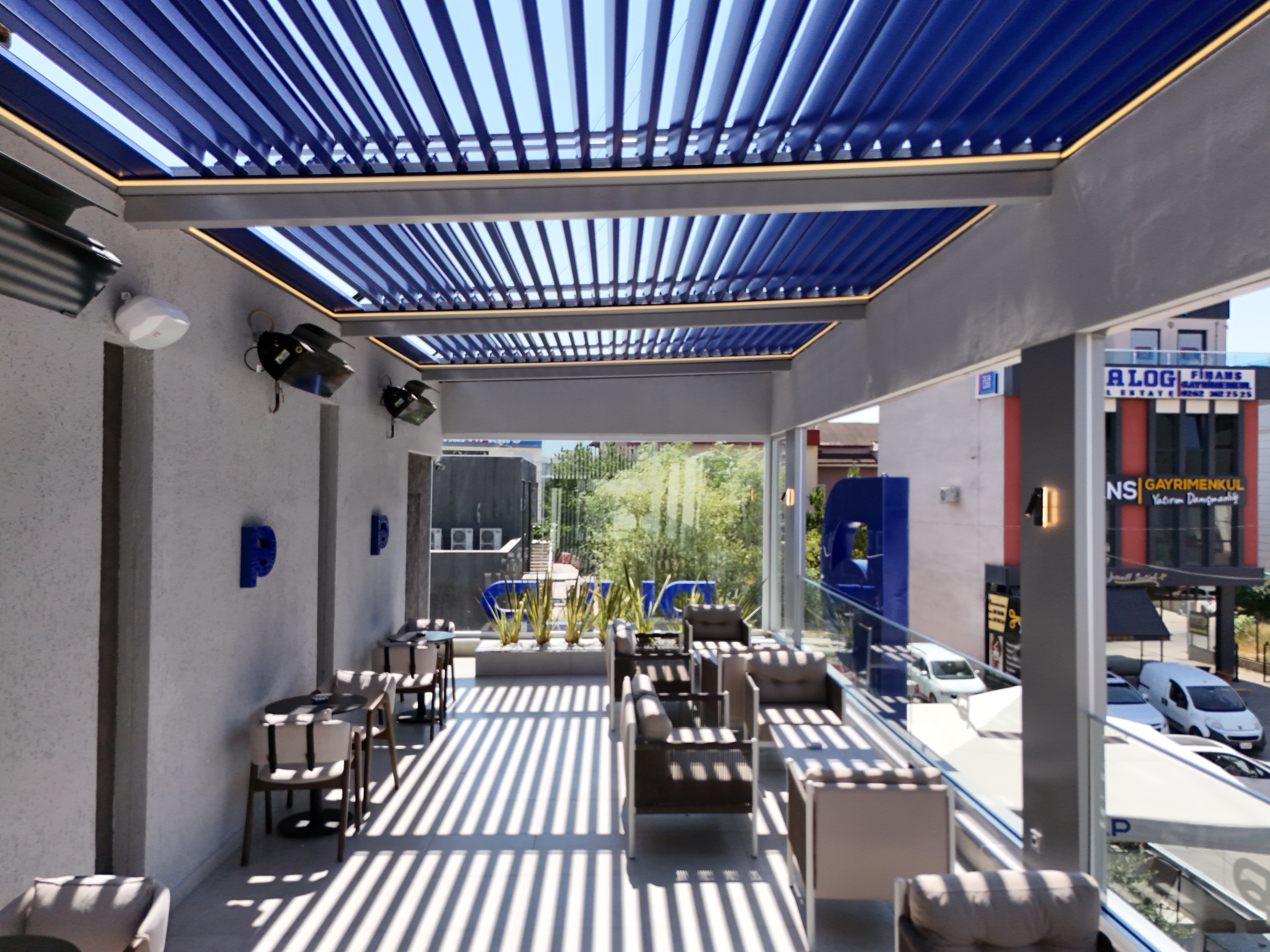 Pergola sistemleri sayesinde villa, teras, restoran ve kafe gibi hem konut hem de ticari mekanlarınızı yeniden tasarlıyoruz. Estetik dokunuşlarla buluşturarak yaşam alanlarınıza hem şıklık hem de konfor katıyoruz.